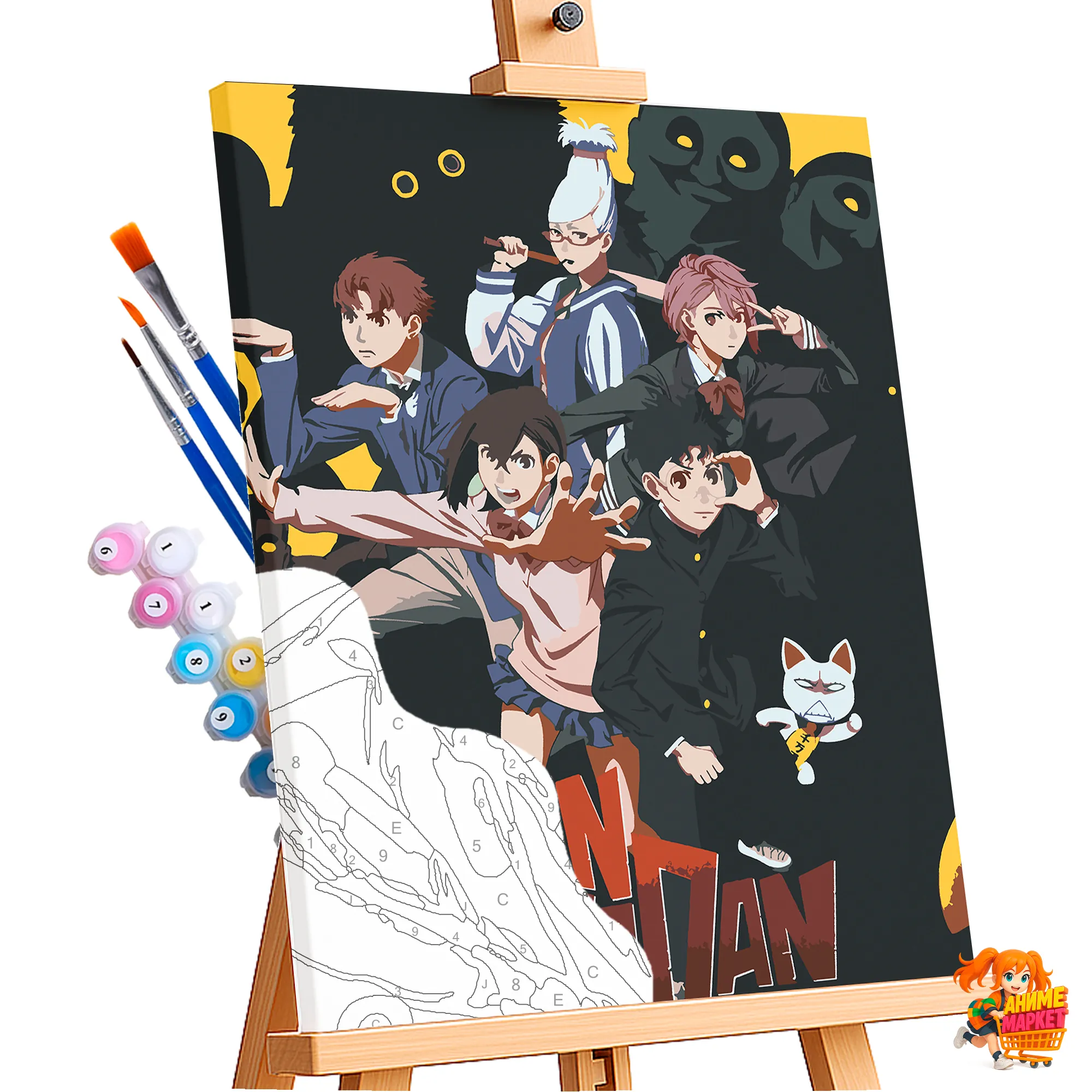 Контуры напечатаны на синтетическом холсте, что обеспечивает долговечность и прочность картины. Техника рисования - без смешивания красок. Значения на баночках соответствует цвету раскрашиваемому на картине.