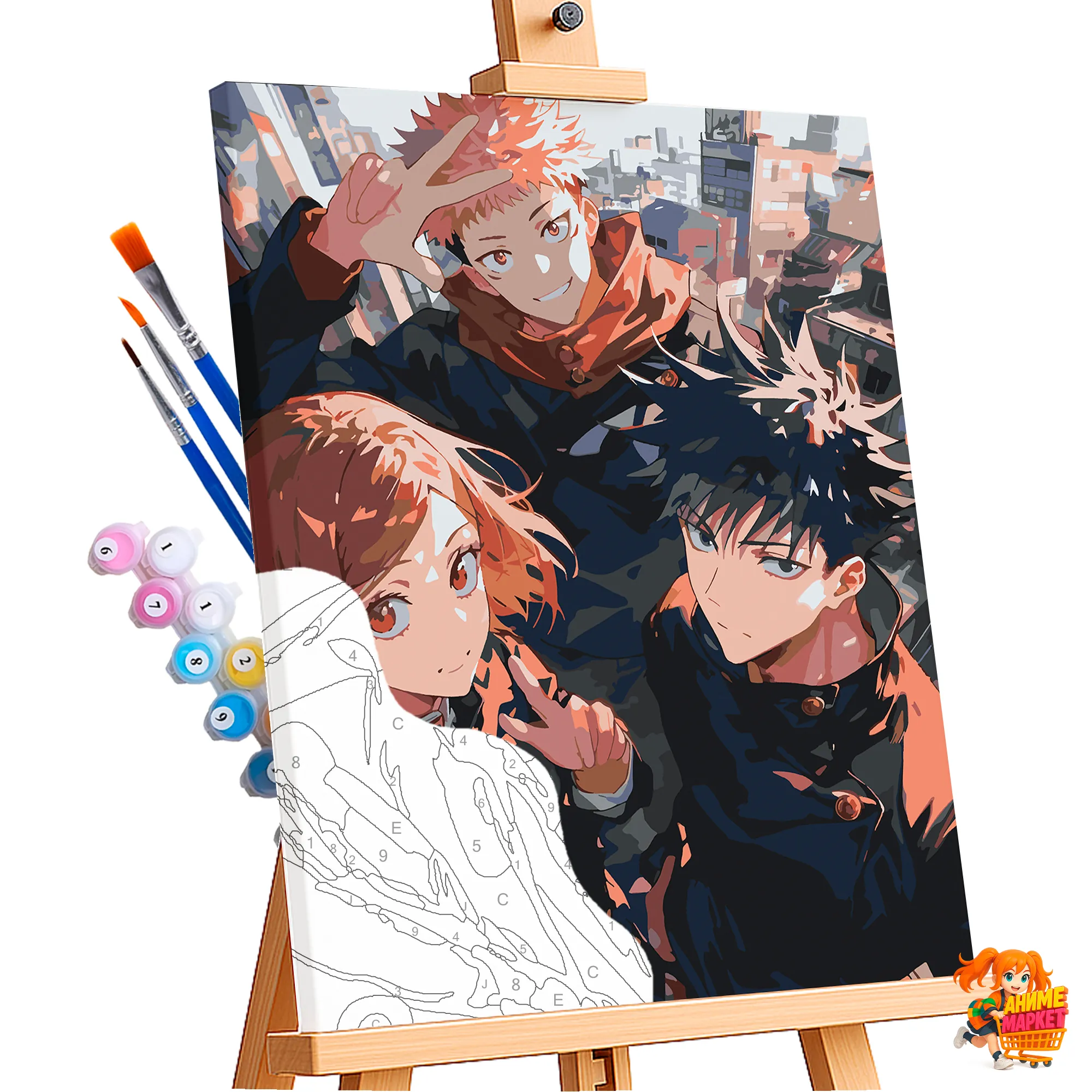 Контуры напечатаны на синтетическом холсте, что обеспечивает долговечность и прочность картины. Техника рисования - без смешивания красок. Значения на баночках соответствует цвету раскрашиваемому на картине.