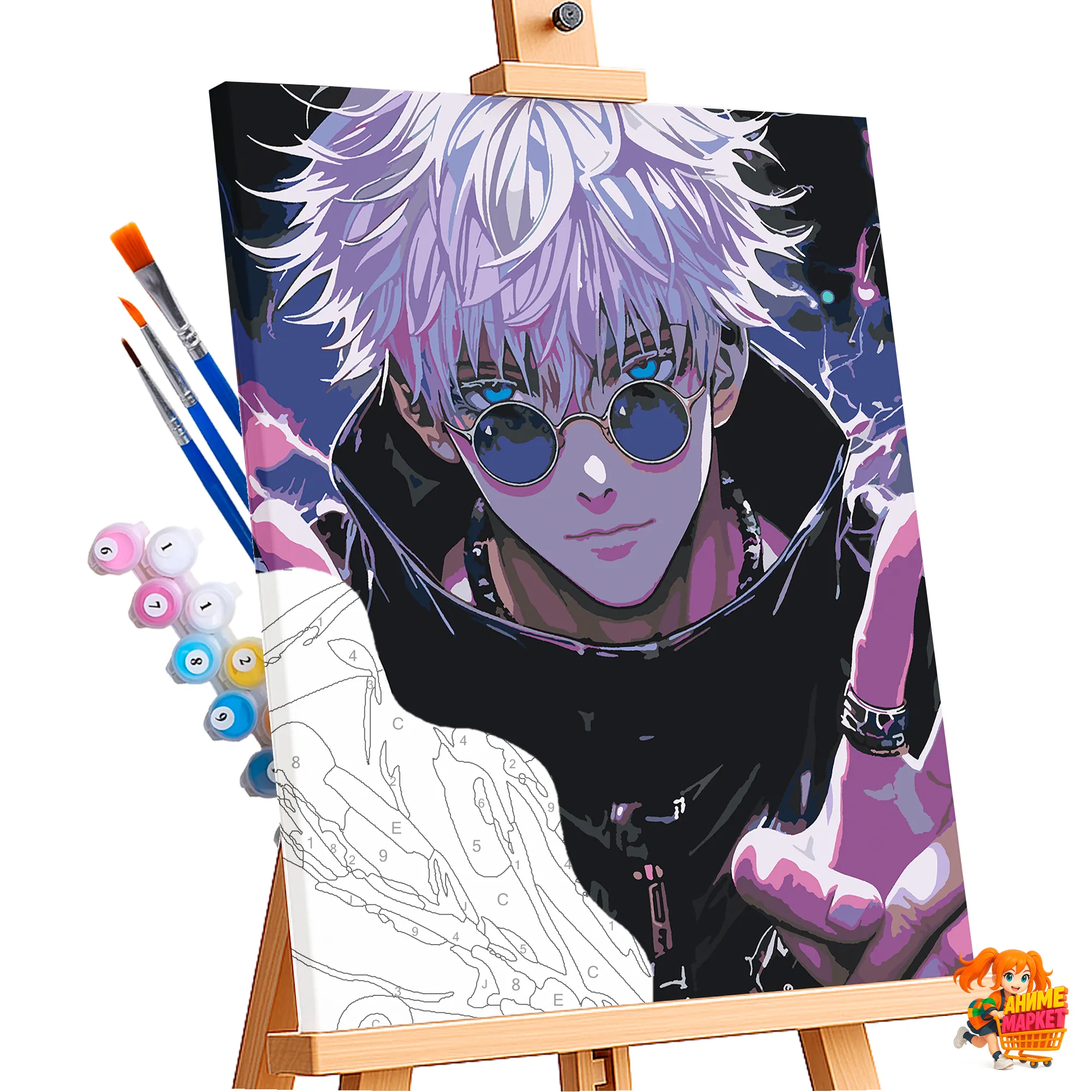 Контуры напечатаны на синтетическом холсте, что обеспечивает долговечность и прочность картины. Техника рисования - без смешивания красок. Значения на баночках соответствует цвету раскрашиваемому на картине.