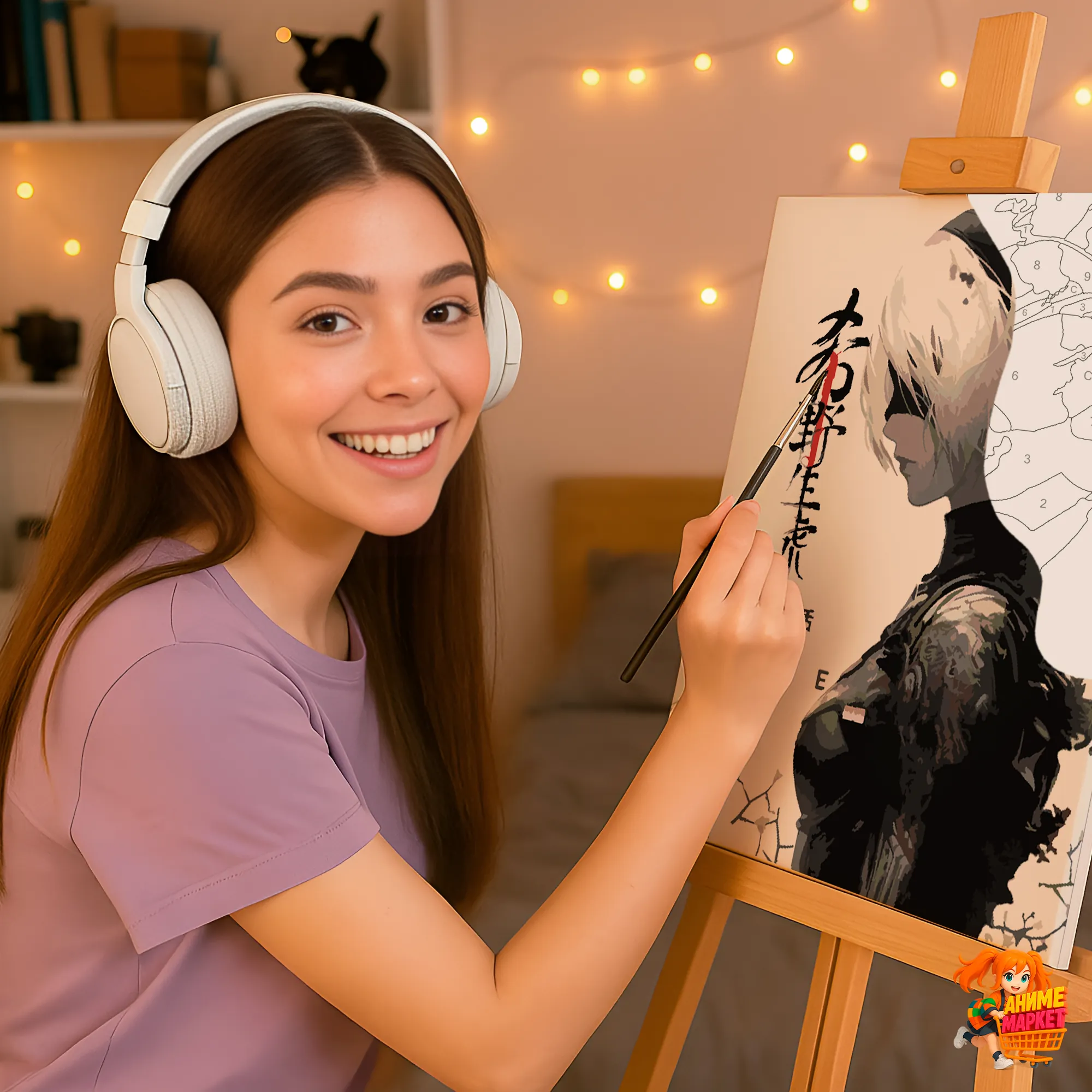 Контуры напечатаны на синтетическом холсте, что обеспечивает долговечность и прочность картины. Техника рисования - без смешивания красок. Значения на баночках соответствует цвету раскрашиваемому на картине.