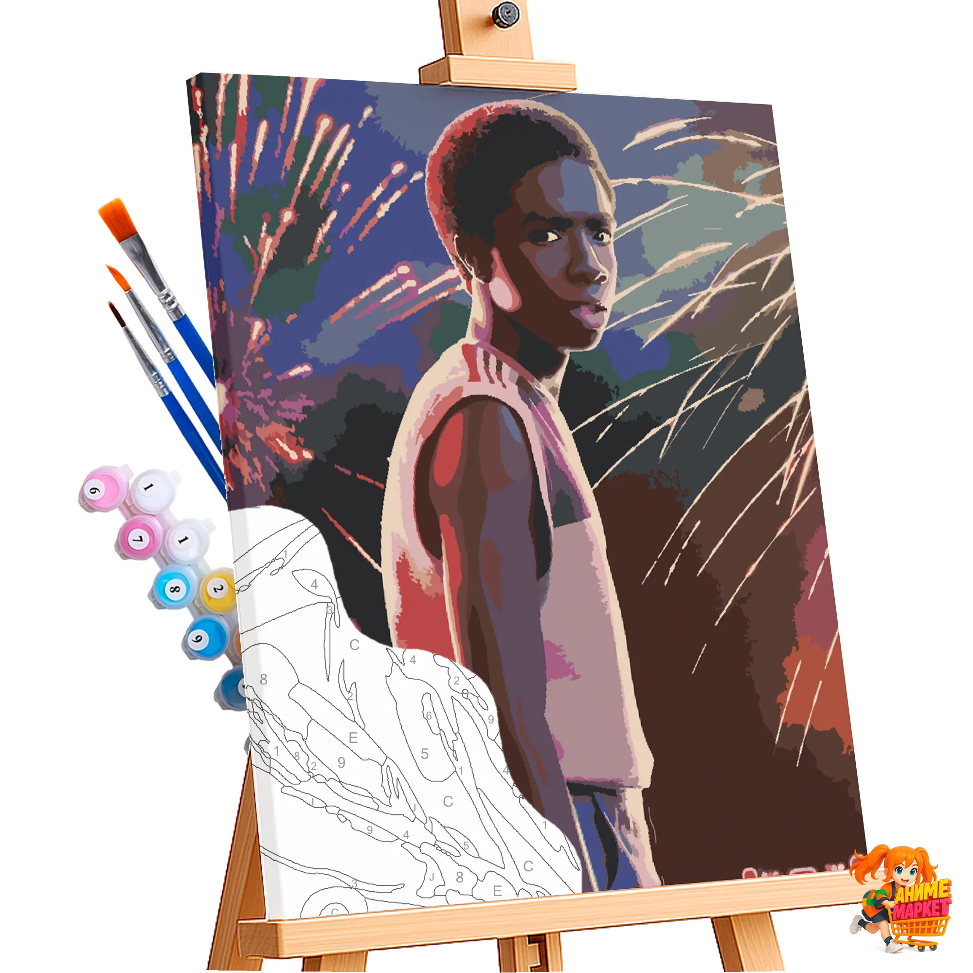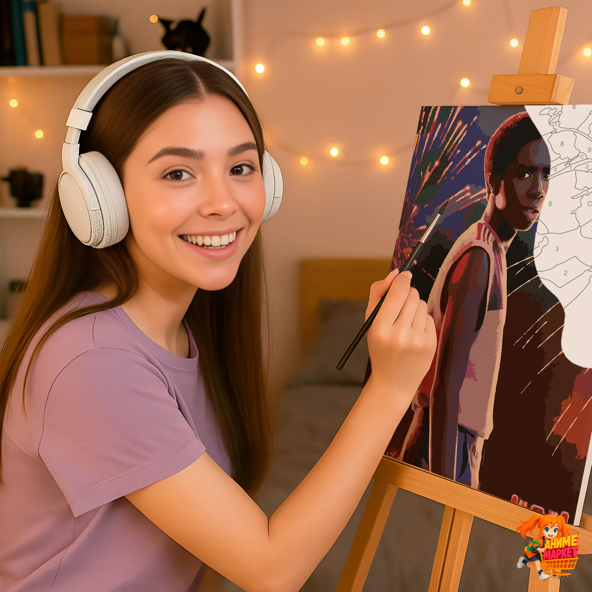 Контуры напечатаны на синтетическом холсте, что обеспечивает долговечность и прочность картины. Техника рисования - без смешивания красок. Значения на баночках соответствует цвету раскрашиваемому на картине.