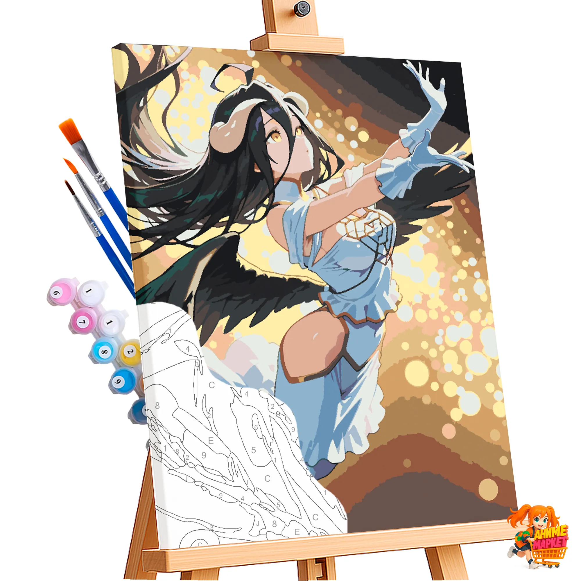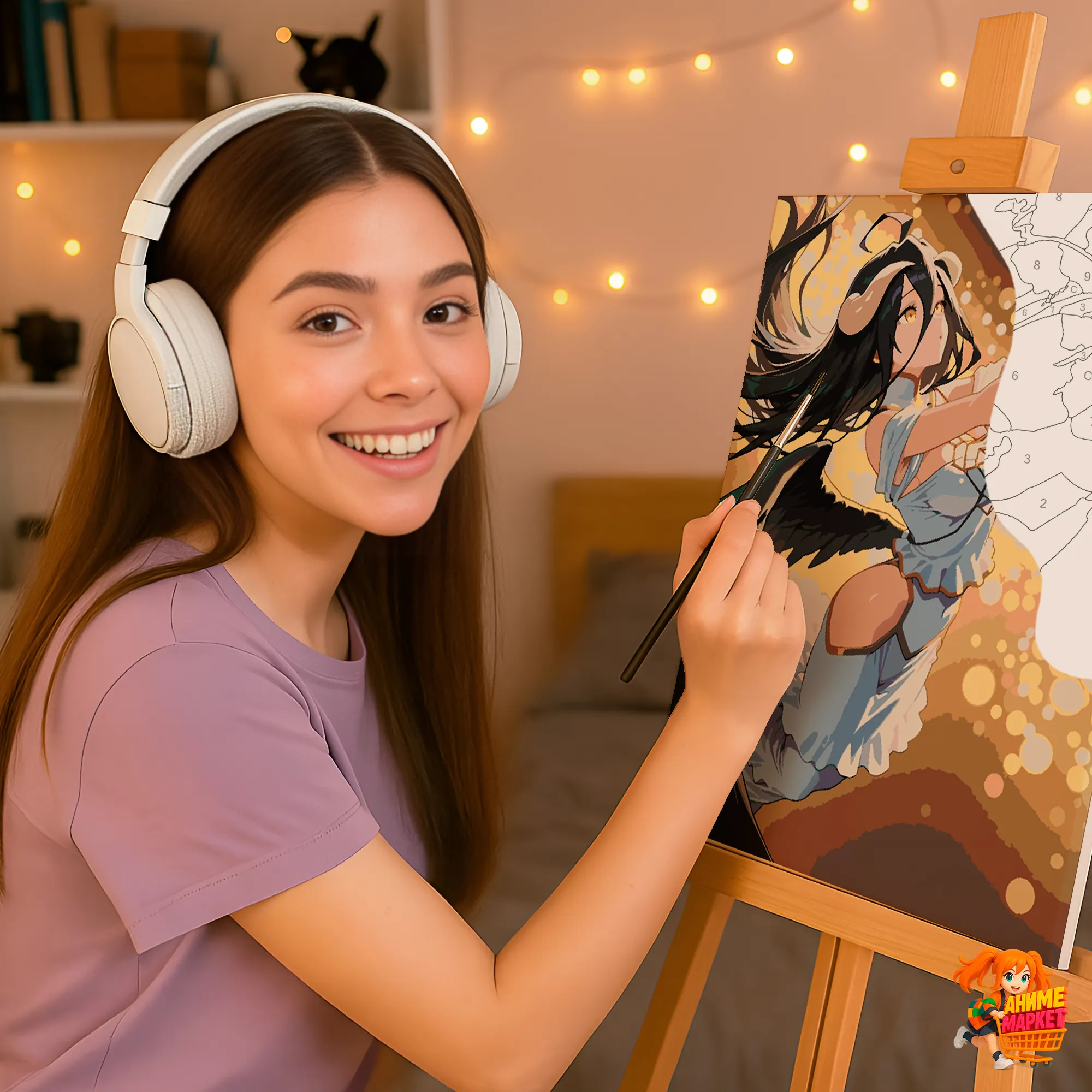 Контуры напечатаны на синтетическом холсте, что обеспечивает долговечность и прочность картины. Техника рисования - без смешивания красок. Значения на баночках соответствует цвету раскрашиваемому на картине.