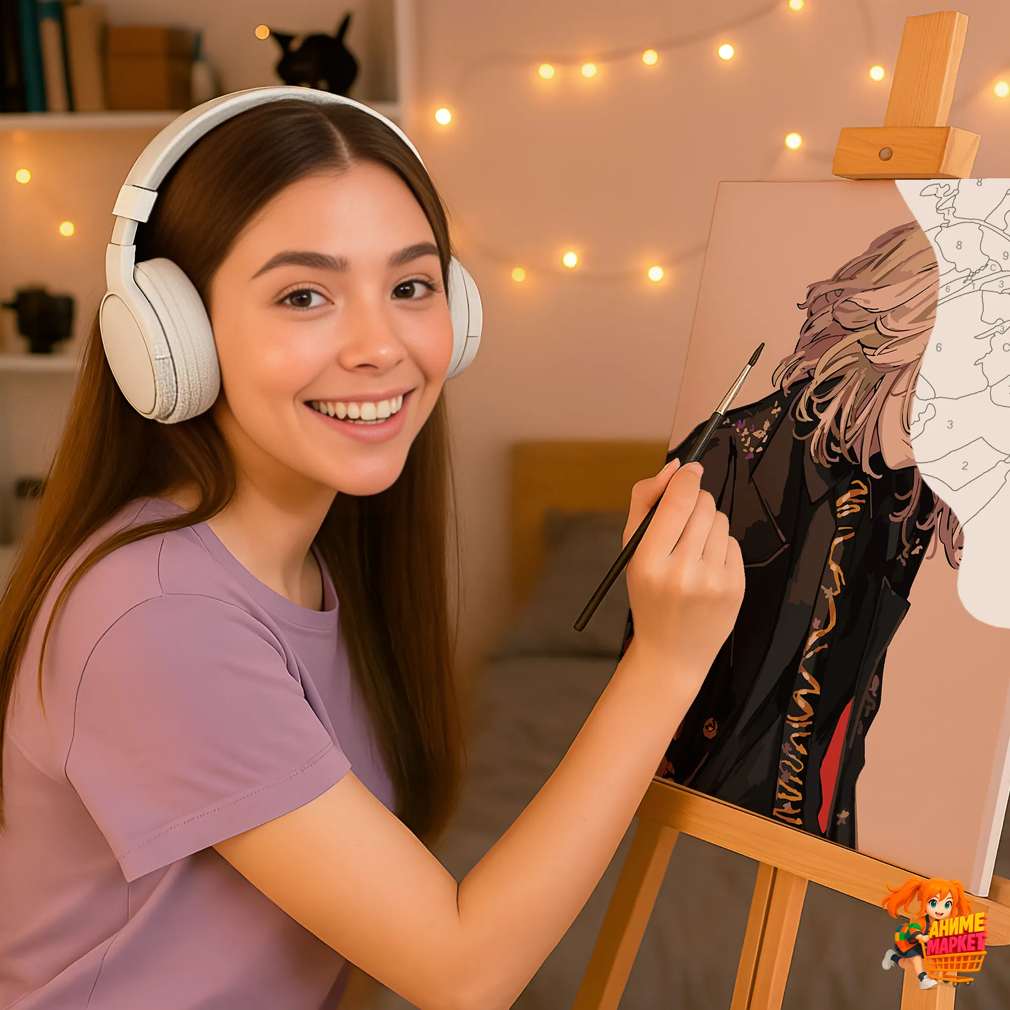 Контуры напечатаны на синтетическом холсте, что обеспечивает долговечность и прочность картины. Техника рисования - без смешивания красок. Значения на баночках соответствует цвету раскрашиваемому на картине.